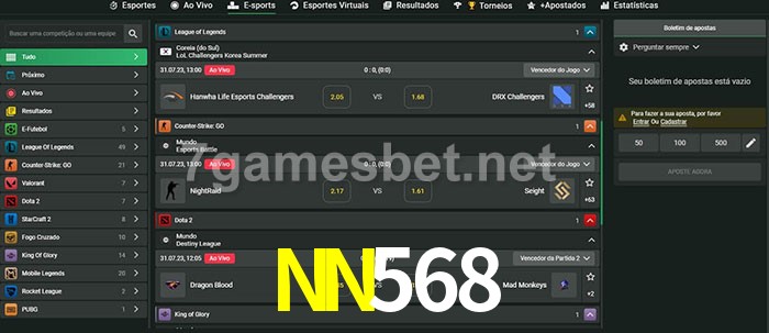 A aposta NN568 oferece aos jogadores a experiência mais conveniente de apostas em eSports!